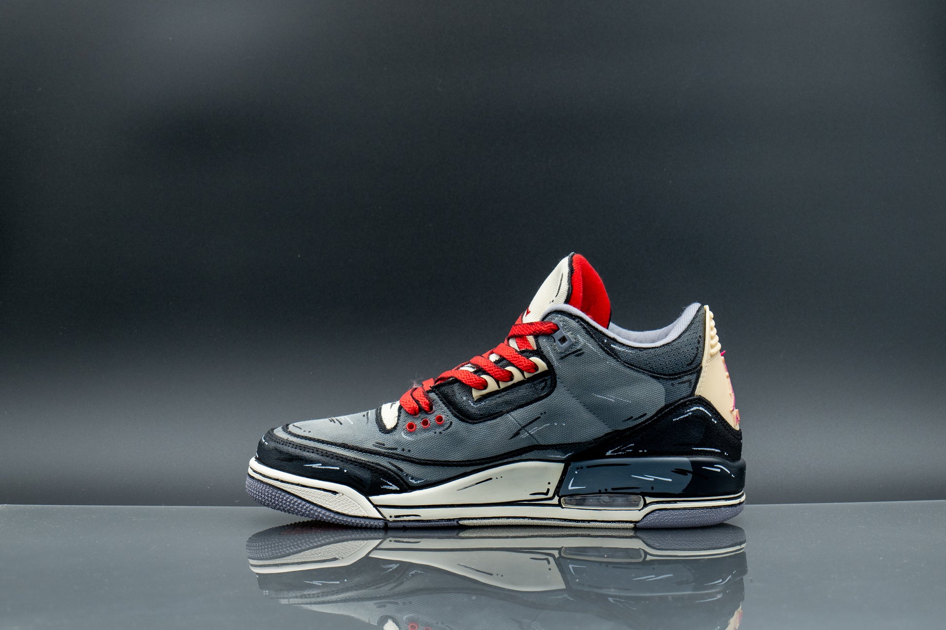 The Jordan 3 is a seriously underutilized canvas– enter Stomping Ground Customs with the upgrade! This design features a Goku Black colorway, hand-painted details down to the laces, and the finishing touch of a custom check.